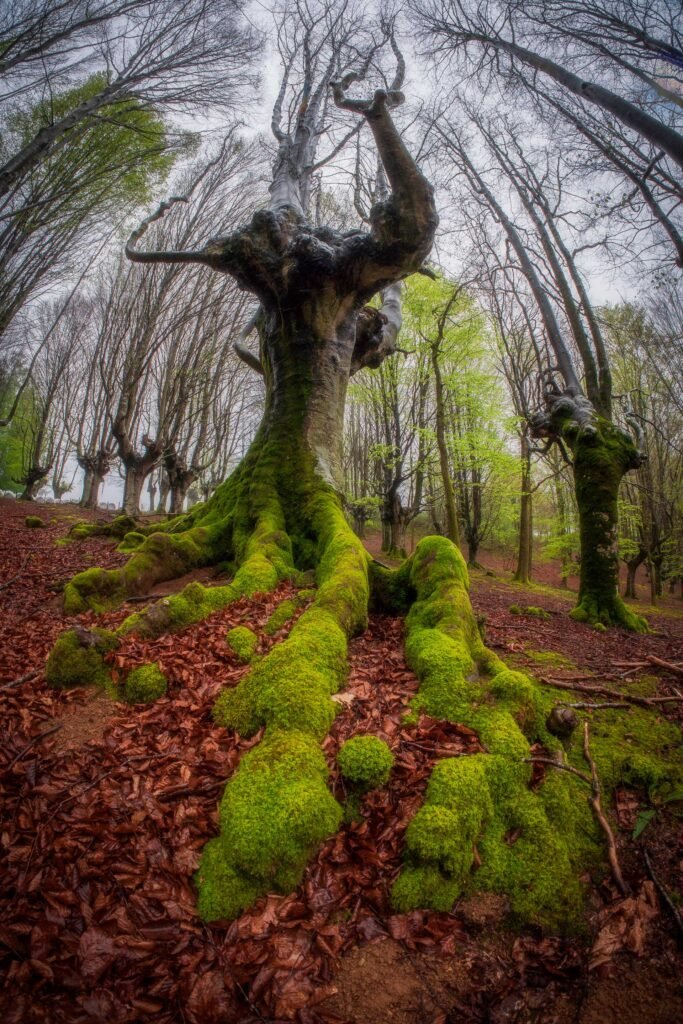 La fotografía dentro del bosque no es sencilla a veces. Un bosque virgen es un caos de maleza, ramas, troncos, etc, y a veces no es fácil saber qué fotografiar. Un consejo que funciona bien es elegir un árbol que nos llame la atención y hacerle un retrato, igual que si fuera una persona. Descubriréis que los árboles pueden proporcionar muchas pareidolias. Otra opción es centrarnos en los detalles: una raíz con musgo, una seta, una rama retorcida…